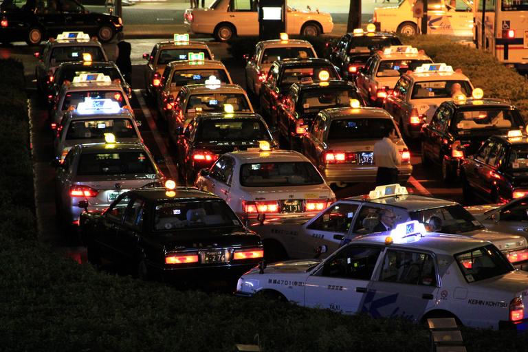 Keywords: taxis night japan taxi drivers city street transportation cars taxi lights auto automobile drivers cab transport light travel black taxi yellow taxi white taxi