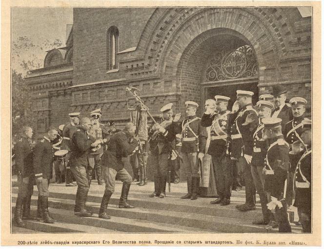 | Keywords: Tcarskoe Selo 1902 011.jpg Tsarskoye Selo Russia Ца ское Село 200-летие лейб-гва дии Ки аси ского Его Величества полка П ощание со штанда том en From M J Meshchaninova's collection ru Из коллекции Ю ещанинова 1902 Creator Karl Bulla Historical images of Tsarskoe Selo Flags of the His Majesty's Cuirassier Guards Regiment Photographs by Karl Bulla Saint Julian church in Tsarskoye Selo PD-old | ||||
