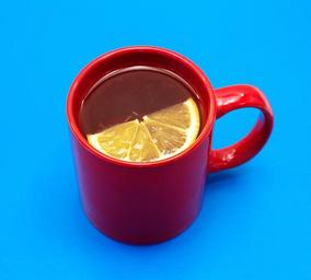 Keywords: tea lemon red mug blue background