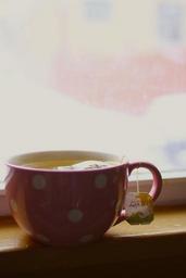 Keywords: tea mug drink hot cup beverage breakfast morning teapot warm cozy green tea polka dot window
