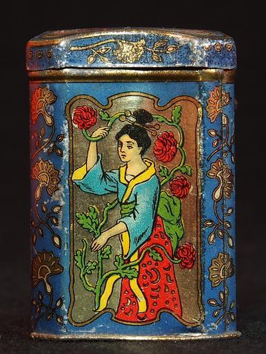 | Keywords: Tea sample tin with four Geishas, photo5.JPG Very old product that is not produced and not sold any more Note that some tins may look the same but when looked for carefully there are some slight differences Photographed at a collector of Droste memorabilia and old tin cans For more info see http //www tincollectors nl/ tincollectors nl or email info tincollectors nl own 2014-02-08 11 40 40 Alf van Beem CC-Zero Trademarked Tea tins | ||||