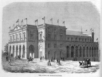 | Keywords: Teatro de Matanzas, en El Museo Universal.jpg Teatro Sauto en la revista española El Museo Universal 1866 2 4 El Museo Universal Vista general del teatro de Matanzas 10 5 36 http //prensahistorica mcu es/es/catalogo_imagenes/grupo cmd interno S posicion 4 path 4056081 presentacion pagina date 1866 2 4 1889-8440 Dibujo Creator Federico Ruiz Grabado Creator Bernardo Rico y Ortega PD-Scan PD-old-auto-1923 1894 El Museo Universal Sauto Theater Federico Ruiz Engravings by Bernardo Rico 1866 in Spain |