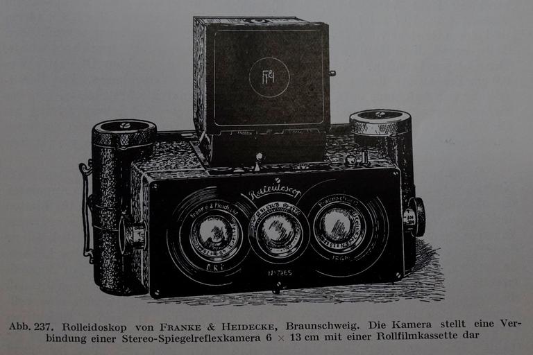 Keywords: Technische Sammlungen Dresden - Foto - Rolleidoskop für Sch - DSC4536.jpg de Rolleidoskop Vewrbindung einer Stereo Spiegelreflexkamera 6 13 cm mit einer Rollfilmkassette von Franke Heidecke Braunschweig 2016-03-05 16 27 33 Die Photographische Kamera und ihr Zubehör in Alfred Hay Herausgeber Handbuch der Wissenschaftlichen und angewandten Photographie Band II; Verlag von Julius Springer Wien 1931 Karl Pritschow other versions WikiTech-Tage Dresden 2016 PD-Art Rollei cameras |