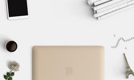 Keywords: technology desk top top view office laptop space