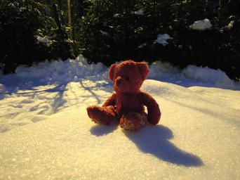 Keywords: teddy bear red snow winter frost nature snowy bear toy lonely