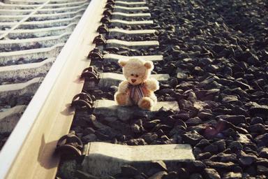 Keywords: teddy rail teddy bear bear sun cold winter lonely nature stones ground alone autumn wanderlust