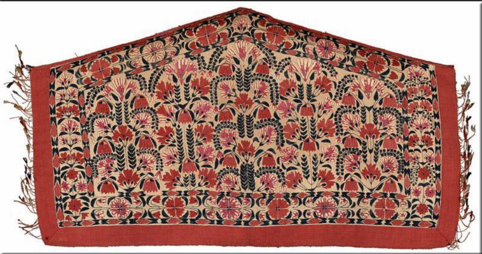 | Keywords: Tekke asmalyk.jpg mid-19th century original applied outer border with multi-colored tassels losses to silk embroidery fabric backed http //www spongobongo com/ltf/ltf9963 htm Unknown Tekke weaver mid-19th century PD-old-100 Files uploaded by PDTillman Textile arts Turkmen Turkuman Khanqah |