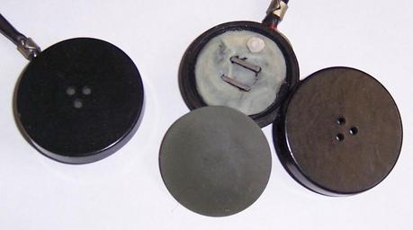 | Keywords: Telephon TA.jpg ru Фотоснимок телефонного капсюля Earphone unit assembled left and disassembled right It consists of a permanent magnet top center with electromagnet windings around its poles not visible under the grease with its poles near a steel diaphragm bottom center The magnetic field of the magnet attracts the diaphragm When an audio signal current is applied to the electromagnet it creates a varying magnetic field that alternately strengthens and weakens the magnet's pull on the diaphragm So the diaphragm moves back and forth pushing on the air creating a sound wave own Се гин В А 8 02 2009 Telephone microphones |