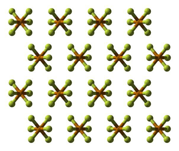 | Keywords: Tellurium-hexafluoride-xtal-1992-3D-balls.png Ball-and-stick model of part of the crystal structure of tellurium hexafluoride TeF<sub>6</sub> X-ray crystallographic data from http //dx doi org/10 1080/00268979200100501 Mol Phys 1992 75 689-698 Model constructed in http //www crystalmaker com/ CrystalMaker 8 1 Image generated in http //accelrys com/products/discovery-studio/visualization/discovery-studio-visualizer html Accelrys DS Visualizer Own 2009-05-26 Ben Mills Benjah-bmm27 Images by Ben Mills Tellurium hexafluoride Crystal structures of fluorides |