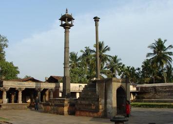 Keywords: temple lamp post stone garuda stambha structure architecture religion hinduism banavasi karnataka india