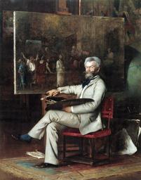 | Keywords: Temple Portrait of Mihály Munkácsy 1887.jpg Artwork Creator Hans Temple 1887 Oil on canvas Size cm 179 3 228 9 Private collection LangSwitch Imre Pákh Pákh Imre object history exhibition history credit line bottom right Temple 1887 accession number Gosztonyi Ferenc szerk Munkácsy a nagyvilágban A Magyar Nemzeti Galéria kiadványai 2005/1 ISBN 963-9225-10-X p 226 cat no 118 http //muzeum arcanum hu/kiadvanyok Magyar Digitális Múzeumi Könyvtár PD-old-70 Hans Temple Painted portraits of Mihály Munkácsy 1887 portrait paintings 19th-century oil on canvas paintings 19th-century oil portraits of sitting men at full length Christ before Pilate by Munkácsy Paintings of artists in the studio 1887 oil on canvas paintings |