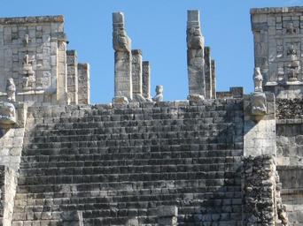 Keywords: Templeofwarriors.jpg en Temple of Warriors detail at Chichen Itza Mexico showing Chacmool Own Jongleur100 2009 Temple of Warriors in Chichén Itzá Images by Jongleur100 Maya architecture Statues of Chac Mool in Chichén Itzá