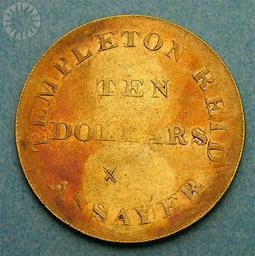 | Keywords: legendary coins legendarycoins numismatics money smithsonian probably public domain probablypublicdomain circle round ancient text indoor SI Neg. 2005-27321. Date: 9/1/2005...Before the famous California gold rush, several important strikes were made in the East: in North Carolina, South Carolina, and Georgia. The earliest took place in Mecklenburg County, N.C., in 1799, where a nugget weighing several pounds was discovered. Its finder used it as a doorstop until someone recognized it for what it was! Discoveries multiplied, and a federal branch Mint was eventually set up in Charlotte to process the metal into coinage. .Discoveries in Georgia and North Carolina in the 1820s received wide publicity, and a "gold fever" resulted. Thousands of people began trekking to the areas in search of instant wealth. Most returned home empty-handed, but successful prospectors found millions of dollars' worth of precious metal. What should they do with their new wealth? Many felt the Philadelphia Mint was too far away for safe travel, and the government wasn't ready to create other coining facilities. .A jack-of-all-trades named Templeton Reid had an answer: strike private gold coins, at a private mint. Reid had extensive experience as a watchmaker, gunsmith, and metalworker. In July 1830, he set up shop in the Georgia hamlet of Milledgeville, and began his brief career as private moneyer-the first since Ephraim Brasher. .Reid struck about a thousand of the $2.50 denomination. As with the larger $10 and $5 dollar denominations, most were later melted down and re-coined by the U.S. Mint. We can trace fewer than twenty-five survivors, including this one..Click here to view the obverse...Credit: Tom Mulvaney (Smithsonian Institution) SI Neg. 2005-27321. Date: 9/1/2005...Before the famous California gold rush, several important strikes were made in the East: in North Carolina, South Carolina, and Georgia. The earliest took place in Mecklenburg County, N.C., in 1799, where a nugget weighing several pounds was discovered. Its finder used it as a doorstop until someone recognized it for what it was! Discoveries multiplied, and a federal branch Mint was eventually set up in Charlotte to process the metal into coinage. .Discoveries in Georgia and North Carolina in the 1820s received wide publicity, and a "gold fever" resulted. Thousands of people began trekking to the areas in search of instant wealth. Most returned home empty-handed, but successful prospectors found millions of dollars' worth of precious metal. What should they do with their new wealth? Many felt the Philadelphia Mint was too far away for safe travel, and the government wasn't ready to create other coining facilities. .A jack-of-all-trades named Templeton Reid had an answer: strike private gold coins, at a private mint. Reid had extensive experience as a watchmaker, gunsmith, and metalworker. In July 1830, he set up shop in the Georgia hamlet of Milledgeville, and began his brief career as private moneyer-the first since Ephraim Brasher. .Reid struck about a thousand of the $2.50 denomination. As with the larger $10 and $5 dollar denominations, most were later melted down and re-coined by the U.S. Mint. We can trace fewer than twenty-five survivors, including this one..Click here to view the obverse...Credit: Tom Mulvaney (Smithsonian Institution) |
