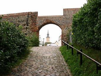 | Keywords: Templin city gate pottergate with church maria magdalena.jpg Blick auf die Maria-Magdalenen-Kirch durch das Töpfertor in der Stadtmauer von Templin Uckermark Brandenburg Deutschland View of church Maria Magdalena through te Potter Gate in the town wall of Templin Brandenburg Germany Own 2006-09-06 de User Sebastian Wallroth Public Domain City walls in Templin | ||||