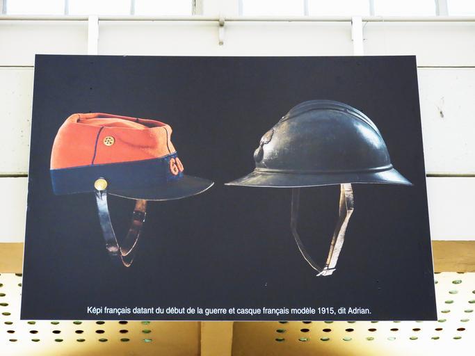 | Keywords: Temporary exhibition about WWI, gare de Paris-Est, 2014 (French kepi & Adrian helmet).jpg en Kepi of the French army in 1914 and Adrian helmet used since 1915 Poster of the temporary exhibition about WWI june-nov 2014 in Paris-Est railways station France fr Képi de l'armée française de 1914 et casque Adrian utilisé à partir de 1915 Affiche de l'exposition temporaire sur la Première Guerre Mondiale gare de Paris-Est juin-nov 2014 2014-08-15 sf Tangopaso fr Exposition dans le cadre du centenaire de la Première GUerre mondiale photographies de Didier Pazery commissariat DPazzeryet Agnès Voltz orga association Chambres avec vues textes Olivier Morel et DPAzery trad en Francesca Dal Chele et CHristine Cross trad all Verena Majer suivi ed Clarisse Bouillet maquette Ultrafluide Adrian helmets Military uniforms of France in World War I Kepis of France Temporary exhibition about WWI in gare de Paris-Est june-nov 2014 |