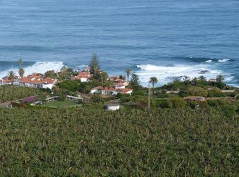 Keywords: tenerife canary islands landscape nature spain sea ocean outlook view farm agriculture plantation banana fruit wave