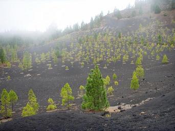 Keywords: tenerife lava trees green lunar landscape nature cold fog