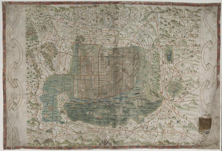 | Keywords: Tenochtitlán, 1521 WDL503.png Artwork ru Теночтитлан 1521 г fr Tenochtitlán 1521 en Tenochtitlán 1521 zh 特诺奇蒂特兰,1521 pt Tenochtitlán 1521 ar تينوشتيتلان، 1521 ru Эта топог афическая ка та го ода ехико и его ок естностей была составлена п име но в 1550 г почти че ез т и десятилетия после завоевания Э наном Ко тесом ацтекской столицы го ода Теночтитлана в 1521 году Теночтитлан был основан в XIV веке на ост ове пос еди соленого озе а Тескоко После завоевания го ода испанцы снесли его цент альные части и вместо ацтекских х амов пост оили здания в испанском стиле оставив п актически без изменения асположение улиц а ка те показаны новые соо ужения В цент е ка ты ядом с площадью кото ая в наши дни называется Plaza de la Constitución изоб ажен кафед альный собо Iglesia Mayor В нижнем п авом углу ка ты можно видеть часть надписи с посвящением импе ато у Ка лу V а также часть имени Санта К ус именно поэтому живший в Севилье ко олевский космог аф Альфонсо де Санта К ус 1505 1567 гг долгое в емя считался составителем ка ты Более поздние исследования указывают что ка та была на исована человеком жившим в Теночтитлане/ ехико возможно ацтеком получившим ев опейское об азование Известно что Санта К ус никогда не посещал ехико а ст оение ка ты и ее инфо мационное соде жание позволяют п едположить что составитель был хо ошо знаком с го одом и его жителями Символы на ка те изоб ажения голов зве ей колец звезд и п п едставляют собой геог афические названия на науатле языке ацтеков Ка та соде жит инфо мацию об общественной и т удовой деятельности о животных и астениях п едоставляя к оме геог афического описания богатую ка тину повседневной жизни го ода ехико в XVI веке Ка та помещена в амку из деко ативного лиственного о намента изоб аженного синим цветом на к асном фоне До оги и каналы отмечены ко ичневым и голубым цветом еизвестно как ка та попала в Швецию По одной тео ии шведский лингвист и путешественник Юхан Габ иэль Спа венфельд п иоб ел ее во в емя своего п ебывания в Испании в конце XVII века а позднее ка та была пе едана в да Библиотеке Уппсальского униве ситета <br>Животные; Искусство мексиканское; Искусство ацтеков; авы и обычаи; Рукописные ка ты; Иллюст и ованные ка ты; Растения; Испания Колонии; Топог афические ка ты s géographiques et un riche aperçu de la vie quotidienne au XVIe siècle dans la ville de Mexico Le cadre est formé d'un feuillage ornemental peint en bleu sur fond rouge Les routes et les canaux sont indiqués en marron et en bleu clair On ignore comment la carte est arrivée en Suède Une théorie veut que le linguiste et voyageur suédois Johan Gabriel Sparwenfeld l'ait achetée au cours de son séjour en Espagne à la fin du XVIIe siècle et qu'elle ait été donnée plus tard à la Bibliothèque de l'Université d'Uppsala <br>Animaux; Art mexicain; Art aztèque; Mœurs et coutumes; Cartes manuscrites; Cartes picturales; Plantes; Espagne--Colonies; Cartes topographiques and a rich picture of everyday life in 16th-century Mexico City The frame consists of ornamental foliage painted in blue on a red background Roads and canals are marked in brown and light blue How the map came to Sweden is not known One theory is that Swedish linguist and traveler Johan Gabriel Sparwenfeld purchased it during his stay in Spain in the late 17th century and that it later was donated to the Uppsala University Library <br>Animals; Art Mexican; Aztec art; Manners and customs; Manuscript maps; Pictorial maps; Plants; Spain--Colonies; Topographic maps zh 这幅墨西哥城及其周边环境的 形图大约绘制于 1550 年,也就是赫尔南·科尔特斯 Hernán Cortés 1521 年征 阿兹特克首都特诺奇蒂特兰后的三十年 特诺奇蒂特兰于 14 世纪建于特斯科科盐湖的 座岛屿上 西班牙人 征 该城后,拆毁了城市中央的建筑物,夷平了阿兹特克神庙,然后用西班牙风格的建筑取 代之,但是几乎完好无损 留了街道布 图显示的是新建筑 图中央是大教堂 Iglesia Major ,大教堂旁边是宪法广 ,右下角附 献给君主查尔斯五世 Charles V 的部分题词 长 以 ,这幅 图 直被认为是塞维利亚的皇家宇宙学家阿方索· 克鲁斯(Alfonso de Santa Cruz,1505 1567 年) 绘制,因为其上标注 他的名字的 部分 Santa Cruz ( 克鲁斯) 后 的研究表明