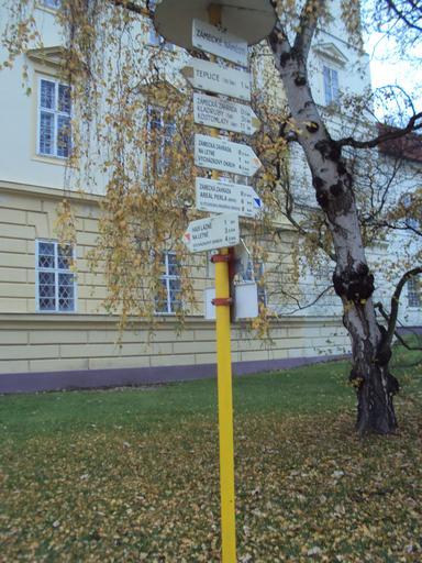 Keywords: Teplice rozcetník 7.JPG cs Rozcestník u zámku Teplice own Zákupák 2012-11-18 Zámecké náměstí Teplice Hiking and footpath fingerposts in Teplice District
