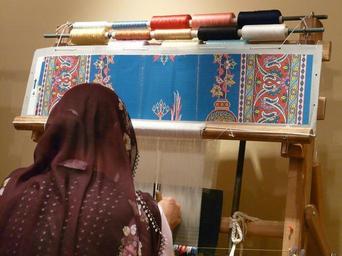 Keywords: teppichknuepferin hand labor carpet weave woman work craft thread loom turkey cappadocia veil veiled spindles