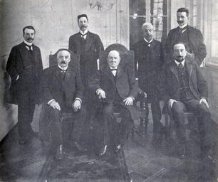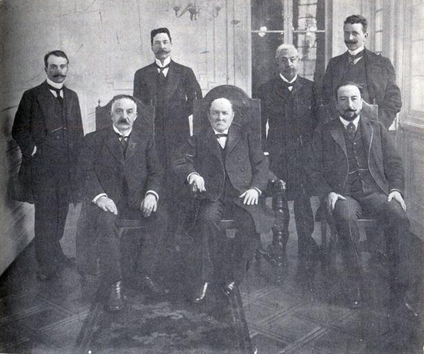 | Keywords: Tercer gabiente de Ramon Barros Luco.jpg es Tercer gabiente de Ramon Barros Luco Leopoldo Castedo Historia de Chile tomo IV Author 1911 PD-Chile Ramon Barros Luco Pedro Nicolás Montenegro Onel 1911 portrait photographs People of Chile in 1911 Group portraits with 7 persons Black and white photographs of men ImageNote 1 407 171 187 497 924 773 2 Ramón Barros Luco Presidente ImageNoteEnd 1 ImageNote 2 673 175 214 473 924 773 2 Enrique Alberto Rodríguez Carmona Ministro de Relaciones Exteriores Culto y Colonización ImageNoteEnd 2 ImageNote 3 200 213 168 398 924 773 2 José Ramón Gutiérrez Martínez Ministro del Interior ImageNoteEnd 3 ImageNote 4 711 35 174 225 924 773 2 Alejandro Huneeus García Huidobro Ministro de Guerra y Marina ImageNoteEnd 4 ImageNote 5 291 44 134 264 924 773 2 Pedro Nicolás Montenegro Onel Ministro de Hacienda ImageNoteEnd 5 ImageNote 6 568 73 129 280 924 773 2 Benjamín Montt Montt Ministro de Justicia e Instrucción Pública ImageNoteEnd 6 ImageNote 7 31 63 149 537 924 773 2 Enrique Zañartu Prieto Ministro de Industria Obras Públicas y Ferrocarriles ImageNoteEnd 7 |