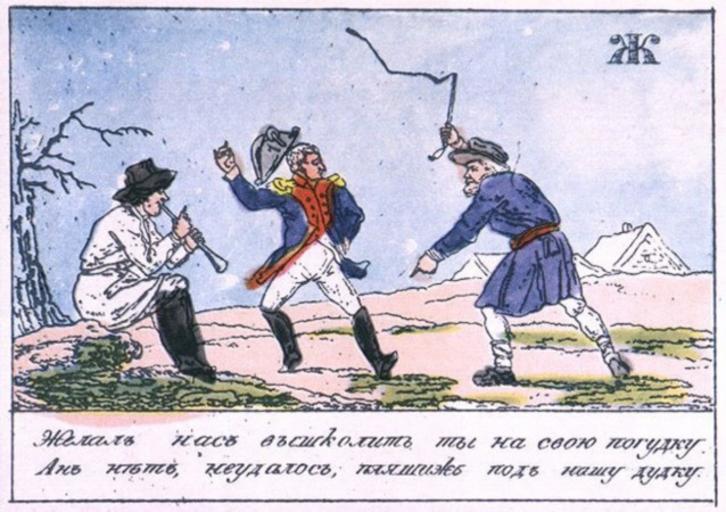 | Keywords: Terebenevskaya azbuka - Ж.jpg ru знаменитое издание «Пода ок детям в память о событиях 1812 года» более известное как «Те ебеневская азбука» Её создатель скульпто И И Те ебенев 1780-1815 завоевал поистине всена одную славу своими г афическими листами на темы Отечественной войны 1812 года Те ебеневу п инадлежит более полусотни сати ических исунков снискавших на яду с ка икату ами А Г Венецианова и И А Иванова небывалую популя ность в самых ши оких к угах усского общества s 1810 http //www museum ru/museum/1812/Library/Azbuka/ И И Те ебенев 1780-1815 other versions PD-old-70-1923 Terebenevskaya azbuka Cyrillic Zh as an initial Russian letter Zh Files uploaded by Shakko from various sources Uploaded with UploadWizard |