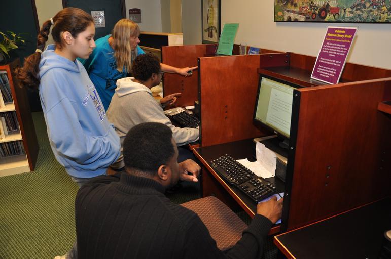 Keywords: Teresa & Jermaine assist patrons at Eastwood #KPLsnapshot Kalamazoo Public Library Kalamazoo Public Library
