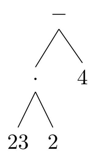 Keywords: Term42.svg en Example expression <math>23\cdot 2-4</math> as a tree 2012-01-18 own Gms cc-zero Uploaded with UploadWizard Syntax trees