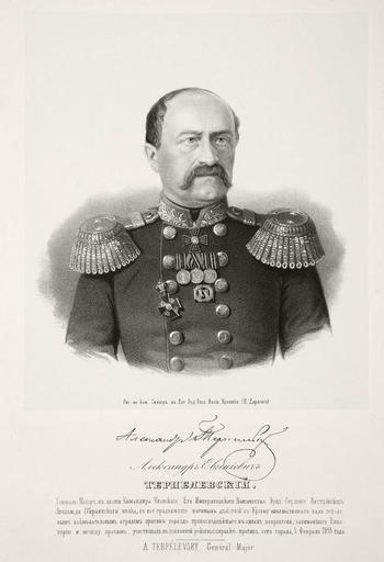 | Keywords: Terpelevskij Alexandr Evgenievitch.jpg А Е Те пелевский По т еты лиц отличившихся заслугами и командовавших действующими частями в войне 1853-1856 годов СПб 1858-1861 Author before 1859 PD-Art Military people of the Crimean War Military people of the Russian Empire |