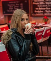 Keywords: terrace woman hot coffee latte outdoors cold weather drink holding cup