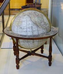 | Keywords: Terrestrial globe, James A. Wilson (1763-1855), Bradford VT, 1810, hand-colored engraving on paper, wood, brass, plaster - Bennington Museum - Bennington, VT - DSC08839.JPG en Exhibit in the Bennington Museum - Bennington Vermont USA This work is in the public domain because the artist died more than 70 years ago Photography was permitted in the museum without restriction 2015-02-28 13 44 02 own Daderot other versions PD-old-70 cc-zero Collections of the Bennington Museum James Wilson globe maker |