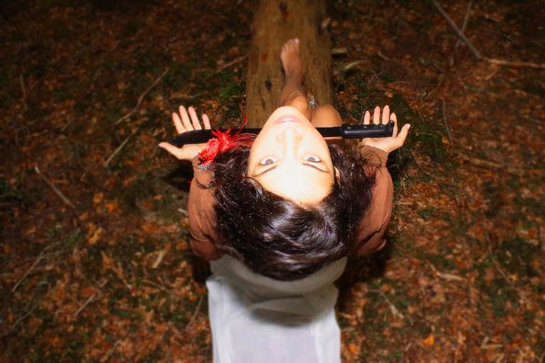 Keywords: terror forest knife terrifying nature out of focus fear girl