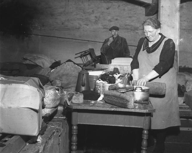 Keywords: tweede wereldoorlog tweedewereldoorlog evacuaties brood bread evacuations evacuees pipe pijp tafel table furniture meubels schort apron rations world war wwii holland dutch netherlands austere poor conditions brood snijden broodsnijden koffiepot vrouw poverty blackandwhite monochrome black and white Beschrijving: Teruggekeerde evacué's Datum: 1945-03-00 Plaats: Zuid-Nederland Vervaardiger: Fotograaf onbekend Formaat: negatief 6x6 Bestanddeelnummer: 2.24.01.15_900-2225 Fotocollectie: Anefo Auteursrechten: Nationaal Archief Voor meer informatie over het Nationaal Archief: www.nationaalarchief.nl Voor meer foto's uit deze en andere collecties, bezoek onze Beeldbank: beeldbank.nationaalarchief.nl/ U kunt ons helpen onze kennis van de fotocollecties te verrijken door tags en commentaren toe te voegen. Herkent u mensen of locaties of heeft u een bijzonder verhaal te vertellen bij één van de foto’s, laat dan een reactie achter (als u ingelogd bent bij Flickr) of stuur een mailtje naar: flickrthecommons@nationaalarchief.nl! Beschrijving: Teruggekeerde evacué's Datum: 1945-03-00 Plaats: Zuid-Nederland Vervaardiger: Fotograaf onbekend Formaat: negatief 6x6 Bestanddeelnummer: 2.24.01.15_900-2225 Fotocollectie: Anefo Auteursrechten: Nationaal Archief Voor meer informatie over het Nationaal Archief: www.nationaalarchief.nl Voor meer foto's uit deze en andere collecties, bezoek onze Beeldbank: beeldbank.nationaalarchief.nl/ U kunt ons helpen onze kennis van de fotocollecties te verrijken door tags en commentaren toe te voegen. Herkent u mensen of locaties of heeft u een bijzonder verhaal te vertellen bij één van de foto’s, laat dan een reactie achter (als u ingelogd bent bij Flickr) of stuur een mailtje naar: flickrthecommons@nationaalarchief.nl! |