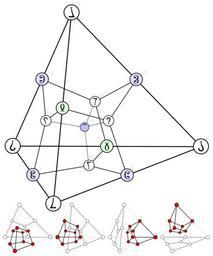 | Keywords: Tesseract tetrahedron shadow.svg Tesseract central projection from vertex 0000 gives a 3-dimensional shadow with a tetrahedral convex hull own 2010 Mate2code 200px 300px Inkscape and commonist Tetrahedral tesseract shadow Colored nibbles blue green white Nibble shorthands Duality A filled with B's filled with scalars reversing A and B |