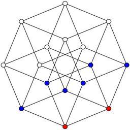 Keywords: Tesseract vertex boundary of two nodes.svg en The vertex boundary blue of two nodes red in a tesseract four-dimensional hypercube own Itai 2010-01-31 Based on File Hypercubestar svg Tesseract Petrie polygon