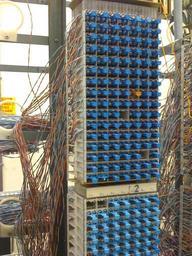 Keywords: Tête de transport.JPG Tête de transport d'un central téléphonique Own 2008-01-31 Punchy Domaine public Distribution frames Wire wrapping Twisted-pair wiring
