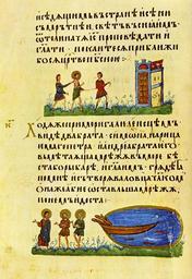 | Keywords: TetraevangeliaOfIvanAlexanderFol14.jpg Четве оевангелие на ца Иван Александъ л 14 иниатю и Йоан К ъстител в затво а го е Симон и б ат му Анд ей напускат иба ската си ладия на Галилейското мо е за да следват Исус долу en Tetraevangelia of Ivan Alexander from the Middle Ages unknown century 14 PD-Art Tetraevangelia of Tsar Ivan Alexander 1355-1356 - BL Add MS 39627 |