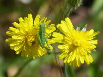 Keywords: tettigonia viridissima green lobster green grasshopper grasshopper on a flower dandelion