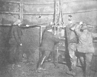 | Keywords: TEU-Tübbingeinbau.png Einbau eines Tübbingsegmentes im Abteufschacht Krügershall sog Unterhängen Betriebsarchiv GTS Teutschenthal 1906 Unbekannt; Recherche/Bildbearbeitung in 2012 Dr Günter Pinzke http //www guenter pinzke de PD-old Historical mines in Saxony-Anhalt Salt mines in Germany |