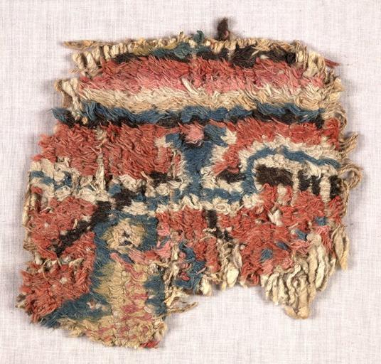 | Keywords: Textile fragment from Loulan Xinjiang China.jpg en Fragment of textile or carpet from Loulan Xinjiang province China dated to 3rd-4th century AD The wool fragment was retrieved from a refuse heap in Loulan Xinjiang China by the Hungarian-British archaeologist Sir Marc Aurel Stein in 1906-1908 The object was among those discovered by Stein's second Central Asian Expedition partially financed by the governments of India and of Great Britain The finds were divided between the two countries Image of the fragment courtesy of the British Museum London British Museum http //www britishmuseum org/research/search_the_collection_database/search_object_details aspx objectid 228725 partid 1 searchText xinjiang fromADBC ad toADBC ad titleSubject on numpages 10 images on orig 2fresearch 2fsearch_the_collection_database aspx currentPage 2 unknown weaver 3rd century-4th century PD-old-100 Loulan Archaeological textiles |