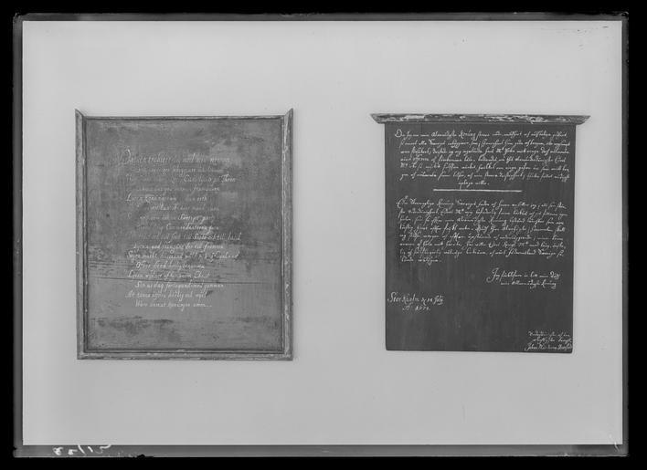 | Keywords: Texttavla - Livrustkammaren - 17572.tif Målad och lackerad på fram- och baksidan målad med fast grön ram På framsidan blåflammig bakgrund guldtext DEN STORMECHTIGSTE HÖGBORNE // FVRSTE OCH HERRE HER CARL DEN XI SWERIGES // GIÖTES OCH WÄNDES KONUNGH STORFÖRSTE TIL // FINLAND HERTIGH UTHI SKÅNE OCH ESTLAND LIFLAND // CARELEN BREMEN VERDEN STETTIN POMEREN // CASSUBEN OCH WÄNDEN FÖRSTE TIL R UE GEN HER-//RE ÖFWER INGERMANLAND OCH WISMAR SÅ OCH // PFALZGREFWE WEDH RHEIN I BEIERN // TIL G UE LICH CLEVE OCH BERGEN HERTIGH <br/><br/>Upptill draperi i silver och rött därpå målat med svart färg fol 119 1737 I nederkanten pappersetikett med bläckpåskrift No 4 En Tunn Lakerad Tafla Den andra sidan målad gulorange därpå textat en hyllningsdikt med guldfärg övre halvan skadad <br/>Mellan de två skivorna utdragbar svartmålad skiva fäst i övre delen av ramens överliggare som fungerar som handtag På båda sidor textat med guldfärg på ena sidan signatur tysk stil Venderdånigste och tro- // plichtigste knecht // Johan Mårtensson Stamfelt samt datum Stockholm d 14 Julij // A o 1674 samt böneskrift original caption texttavla - LRK 158 1674 wood g 359 size mm 233 273 LRK Kungl Klädkammaren Karl XI av Sverige DEN STORMECHTIGSTE HÖGBORNE FVRSTE OCH HERRE Karl XI av Sverige Vnderdånigste och troplichtigste knecht Johan M son Stamfelt DEN STORMECHTIGSTE HÖGBORNE FVRSTE OCH HERRE Karl XI av Sverige Vnderdånigste och troplichtigste knecht Johan M son Stamfelt place of origin original filename LN_B01632_004512 36735 inventory number LRK 158 17572 CC0 Texttavla - Livrustkammaren - 17572-negative tif <gallery caption Different images of same object > File Texttavla - Livrustkammaren - 26134 tif </gallery> Media contributed by LSH without any categories Media contributed by LSH unmatched objKeyword Media contributed by LSH unmatched creator Media contributed by LSH 2013-10 |
