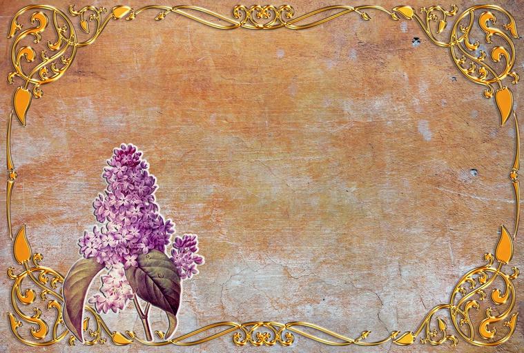 Keywords: texture background paper stationery lilac ornaments ornament frame gold blossom bloom flower design grunge gold frame mount structure