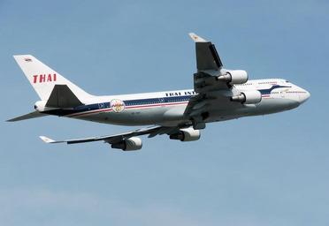 | Keywords: Thai b747-400 hs-tgp takeoff london heathrow arp.jpg Thai Airways Boeing 747-400 HS-TGP takes off from London Heathrow Airport England with main undercarriage doors still closing The aircraft is painted in the 1960 livery to commemorate the 50th year of operation of Thai Airways April 2010 not 2008 as the camera data says own Adrian Pingstone Arpingstone Arpingstone HS-TGP retrojet 2010 at London Heathrow Airport April 2010 in London Thai Airways International aircraft at London Heathrow Airport |