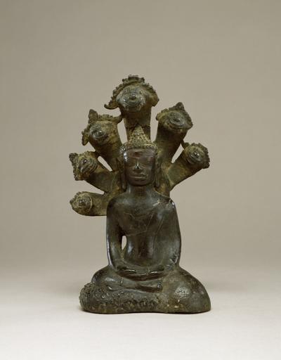 | Keywords: Thai - Naga-Protected Buddha - Walters 542707.jpg In the 10th century Cambodian political expansion disrupted Dvaravati traditions and the open eyes of this Buddha give it a Cambodian look It was also in the 10th century that the naga-protected Buddha became established as an important type of image for the Buddhists of Cambodia The naga may have represented a power that could carry one's soul to heaven following death century 10 bronze cm 16 1 accession number 54 2707 40638 Mr Lamai Kamphaeng Phet prior to January 20 1951 from Wat Phraeo Old Kamphaeng Phet Alexander B Griswold Monkton January 20 1951 presented to the Breezewood Foundation December 1960 inv no 138 Walters Art Museum Henry Walters Bequest of A B Griswold 1992 none Unearthly Elegance Buddhist Art from the Griswold Collection The Walters Art Gallery Baltimore 1995 place of origin Thailand Walters Art Museum license Thai sculptures in the Walters Art Museum Art of Ancient Thailand Media contributed by the Walters Art Museum needs category review |