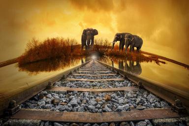 Keywords: thailand elephant sunset nature gleise old railroad tracks seemed
