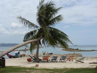 Keywords: thailand koh samui island beach palm trees sea holiday asia water coast southeast deck chair liège