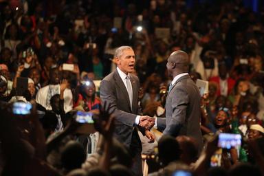 | Keywords: Mandela Washington Fellow Emmanuel Odama of Uganda introduces President Obama at the YALI Presidential Summit, August 3, 2016. State Department Photo by Tim Brown.