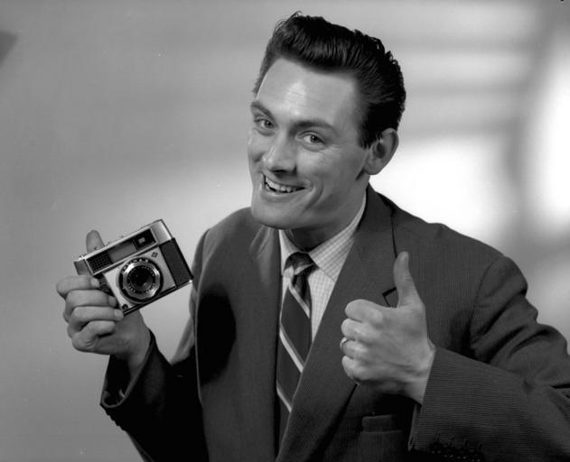 | Keywords: turners (photography) ltd turnersphotographyltd advertising marriage photography cameras 1960s humour happy smiling cheerful neutral background neutralbackground social history socialhistory shadow man suit smile interesting unusual tie stripes hair turners saved my marriage turnerssavedmymarriage black and white photograph blackandwhitephotograph digital image digitalimage twentieth century twentiethcentury promotion business product march 1962 march1962 camera strap camera sales camerasales sales promotions retail consumerism bored husband boredhusband inspiration happiness portrait face industry abstract button crease shirt shine wrinkle clean shaven cleanshaven lense glass standing hand finger shopping commission blackandwhite monochrome people black and white Ah, the joy of photography! (TWAM ref. DT.TUR/2/28465J). You can read a blog relating to these images here www.twmuseums.org.uk/engage/blog/turners-saved-my-marriage/. Tyne & Wear Archives is very fortunate to hold the photographic negatives of the firm Turners (Photography) Ltd. The collection contains many remarkable images commissioned by local firms during the second half of the Twentieth Century. The Turners collection also includes images taken by the firm to promote their own business and this set shows a short series of images taken in March 1962 to promote the sale of cameras in their shops. They tell the story of a bored husband, his mind numbed by television, and his worried wife. Looking for inspiration, the man passes by a Turners shop window and discovers the wonder of photography. At once his happiness returns and matrimonial harmony is restored. We’ve no record of the captions used by Turners to accompany these images so we’ve used a bit of artistic licence and created our own. Maybe you can suggest alternatives. (Copyright) We're happy for you to share these digital images within the spirit of The Commons. Please cite 'Tyne & Wear Archives & Museums' when reusing. Certain restrictions on high quality reproductions and commercial use of the original physical version apply though; if you're unsure please email archives@twmuseums.org.uk Ah, the joy of photography! (TWAM ref. DT.TUR/2/28465J). You can read a blog relating to these images here www.twmuseums.org.uk/engage/blog/turners-saved-my-marriage/. Tyne & Wear Archives is very fortunate to hold the photographic negatives of the firm Turners (Photography) Ltd. The collection contains many remarkable images commissioned by local firms during the second half of the Twentieth Century. The Turners collection also includes images taken by the firm to promote their own business and this set shows a short series of images taken in March 1962 to promote the sale of cameras in their shops. They tell the story of a bored husband, his mind numbed by television, and his worried wife. Looking for inspiration, the man passes by a Turners shop window and discovers the wonder of photography. At once his happiness returns and matrimonial harmony is restored. We’ve no record of the captions used by Turners to accompany these images so we’ve used a bit of artistic licence and created our own. Maybe you can suggest alternatives. (Copyright) We're happy for you to share these digital images within the spirit of The Commons. Please cite 'Tyne & Wear Archives & Museums' when reusing. Certain restrictions on high quality reproductions and commercial use of the original physical version apply though; if you're unsure please email archives@twmuseums.org.uk |