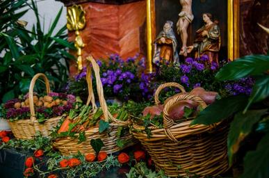 Keywords: thanksgiving altar church christian religion christianity harvest altar mill creek black forest baskets food