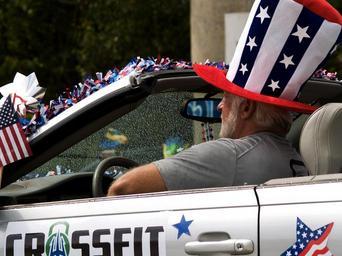 Keywords: fourth july patriotic patriotism people old young girl woman parade cars sign american america usa flags OLYMPUS DIGITAL CAMERA OLYMPUS DIGITAL CAMERA